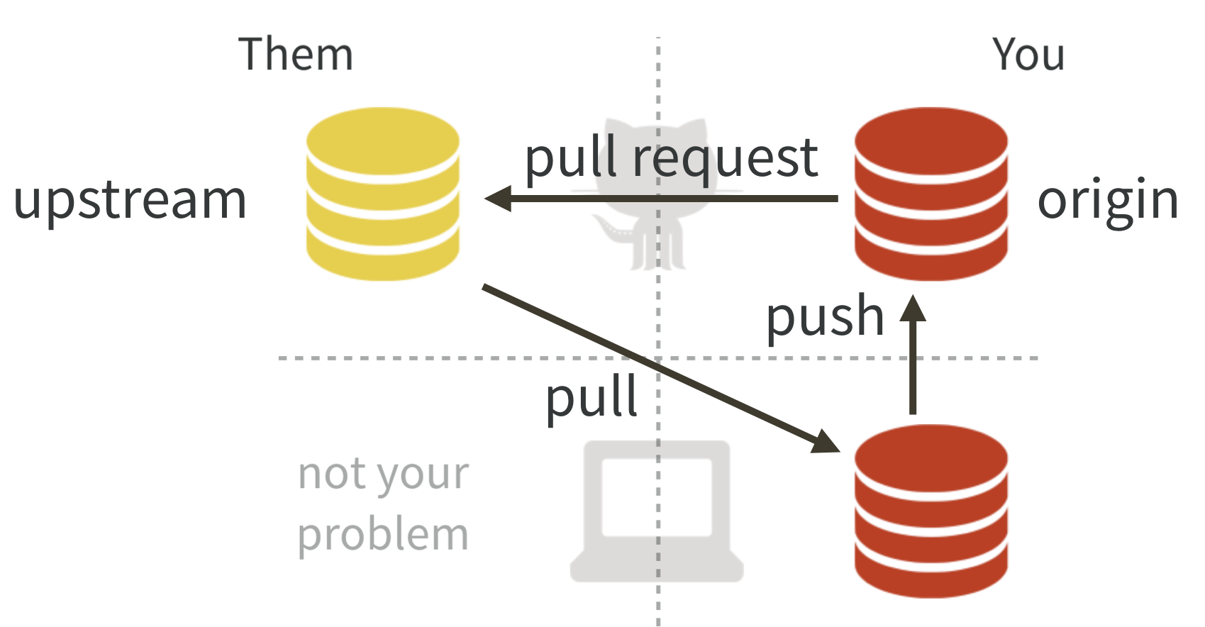 - Then, submit a so-called Pull Request to the owner of the original repo to pull in your changes.