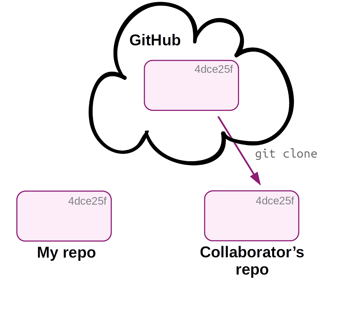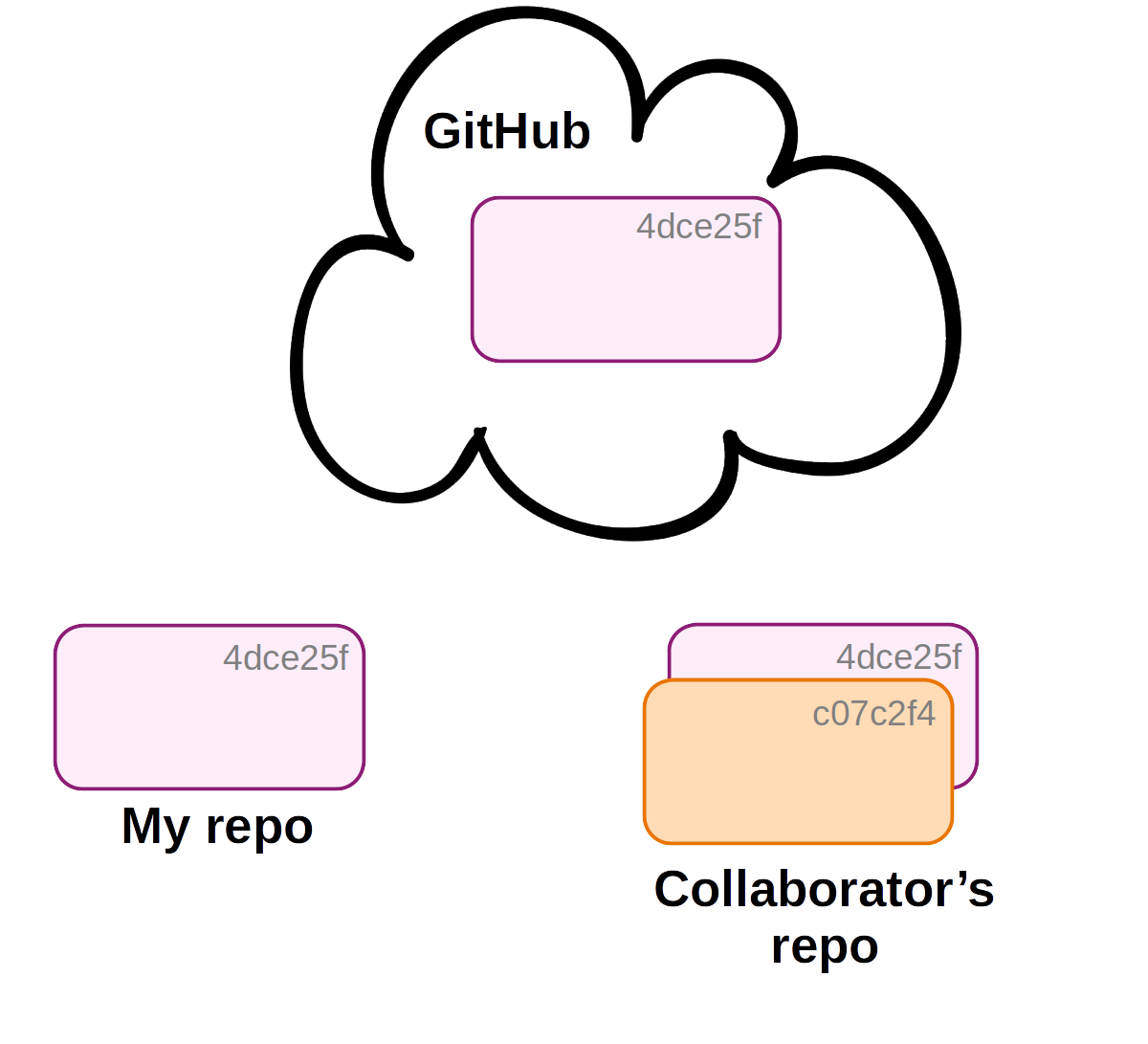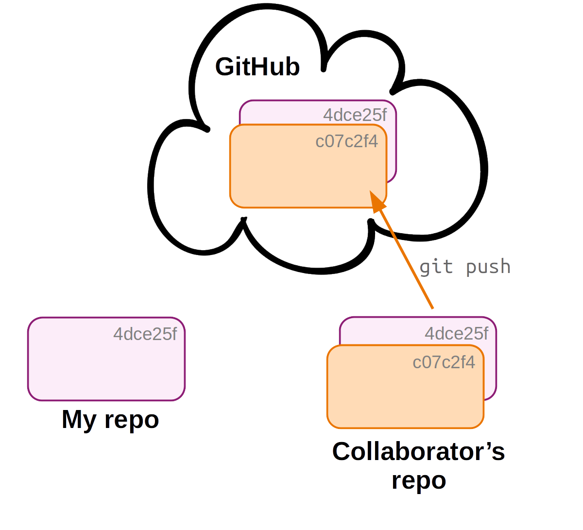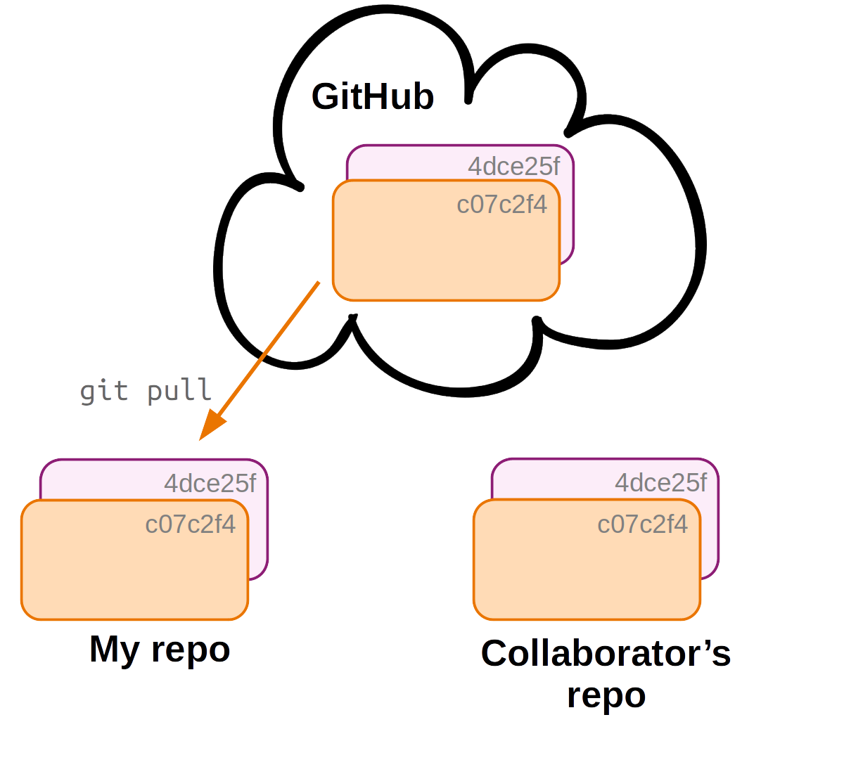 Synchronization between your and your collaborator’s repository happens via the remote, so now you will need a way to download changes from the remote that your collaborator made. This happens with the git pull