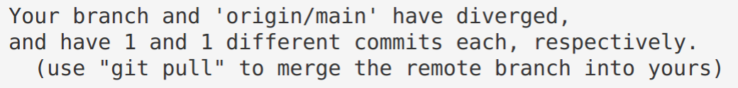 However, when your collaborator has made changes, Git will tell you about “divergence” between your local repository and the remote when you run git status