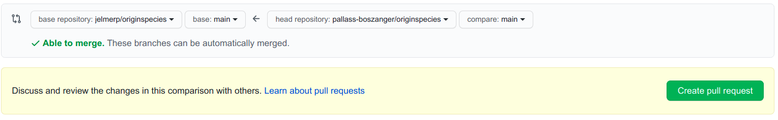 , and check whether the right repositories and branches are being compared (and here you can also see the changes that were made in the commits):