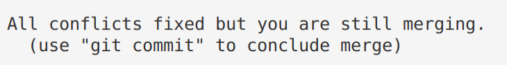 to finish the merge commit:git commit -m "Solved the merge conflict"