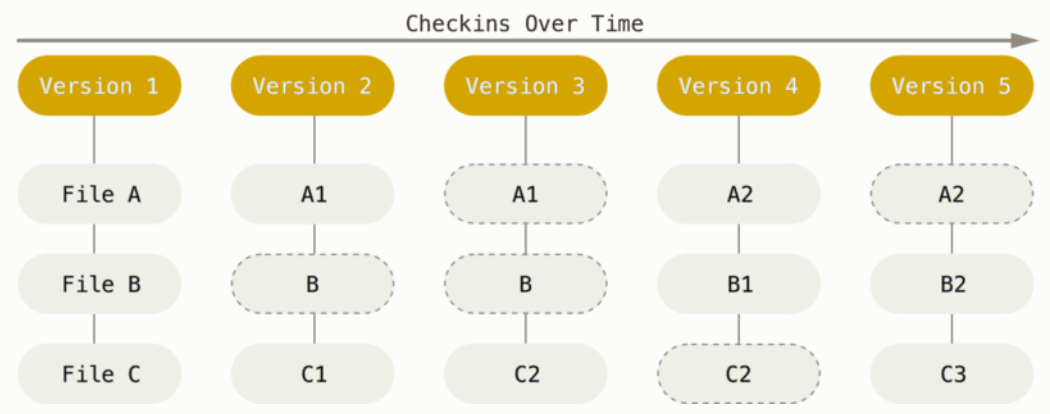 As illustrated above, files that haven’t changed between snapshots are not saved again and again with every snapshot. In fact, Git doesn’t even save full copies of files that have changed: instead, it tracks changes on a line-by-line basis, and only saves changed lines!