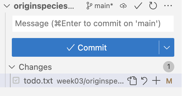 On branch main Changes not staged for commit: (use "git add <file>..." to update what will be committed) (use "git restore <file>..." to discard changes in working directory) modified: todo.txt no changes added to commit (use "git add" and/or "git commit -a")