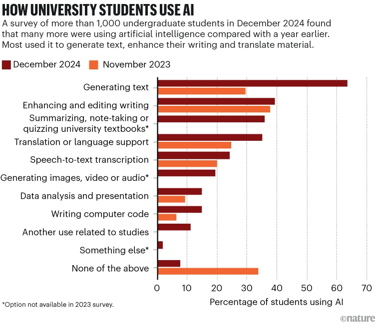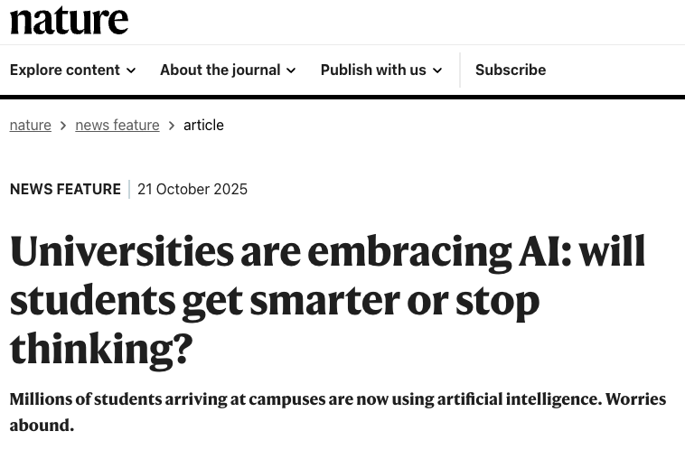 Last week, an interesting News Feature about genAI adoption at universities (Pearson (2025)) was published in Nature: